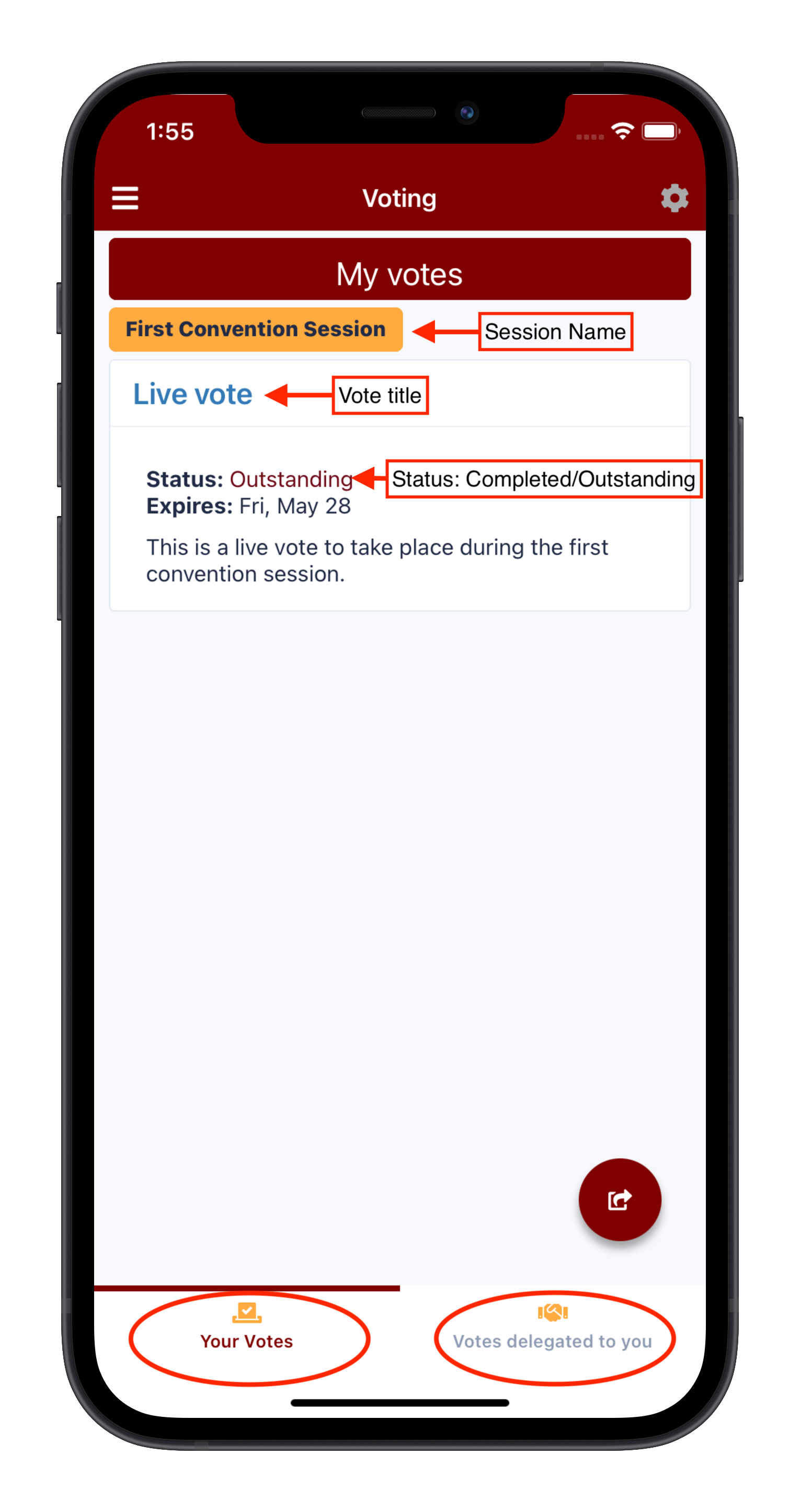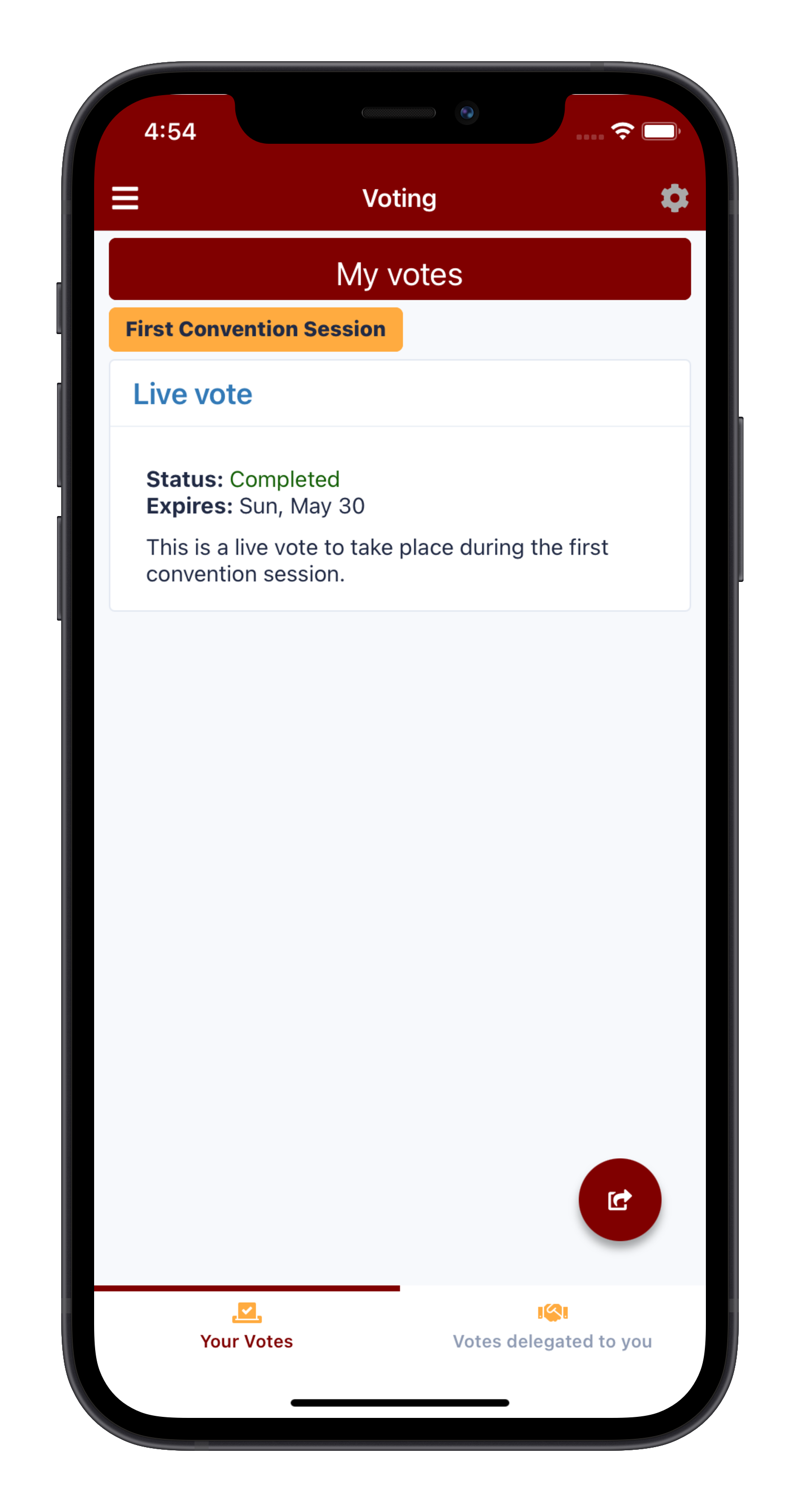 3. On this screen you will see a list of available votes taking place as well as two tabs on the bottom allowing you to switch between your votes and votes that have been delegated to you. To complete a vote first click on the vote card you wish to open.